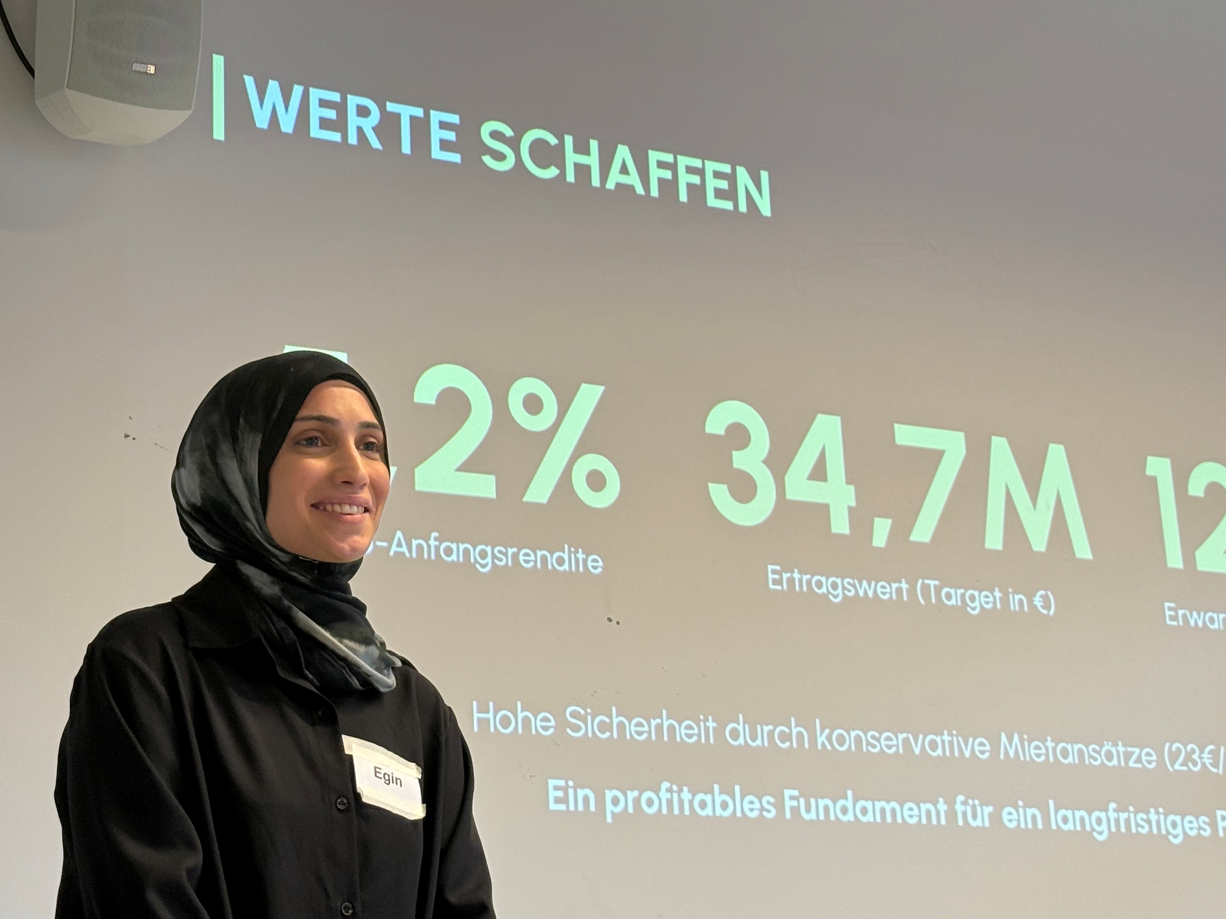 Statt in einer trockenen mündlichen Abschlussprüfung erfolgt die Präsentation der Arbeitsergebnisse im Format „Höhle der Löwen“. Zwar müssen die Studierendengruppen ihre Konzepte nicht vor Herrn Maschmeyer verteidigen, aber vor einer erfahrenen Jury, die sich aus Prof. Meckmann, seiner wissenschaftlichen Mitarbeiterin und externen Co-Prüfern aus der Praxis zusammensetzt. Nach einem rund 20‑minütigen Pitch haben die Jurymitglieder – von der Wirtschaftsförderung Mülheim und dem Stadtplanungsamt Bottrop bis hin zu Unternehmen aus dem Immobiliensektor wie GF Benchmark Group, Wellhöner Immobilien, RMA Management, Redukta und TÜV NORD – die Gelegenheit, Rückfragen zu stellen. Dieser Rahmen simuliert die Realität von Investorenentscheidungen und schärft die Argumentationsfähigkeit der angehenden Absolvent:innen.